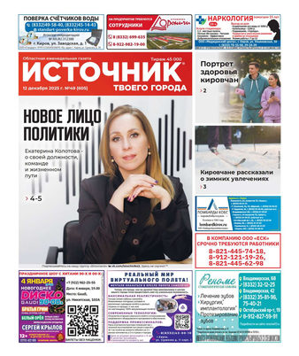 Еженедельная газета «Источник твоего города» распространяется в Кировской области. На страницах издания публикуется актуальная и полезная информация.